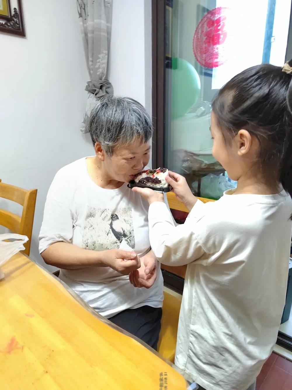 小时候的爷爷奶奶喂我吃饭,现在长大了的我喂他们吃,重阳糕他们吃的好开心呀!道上一声“谢谢您,我爱你”
