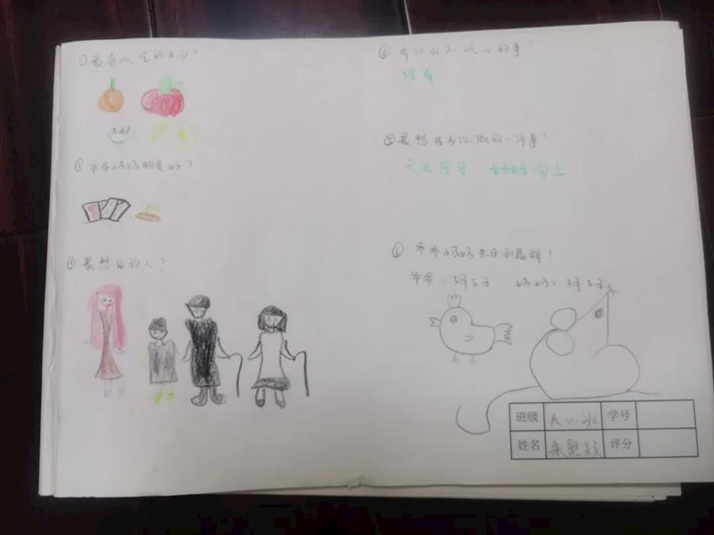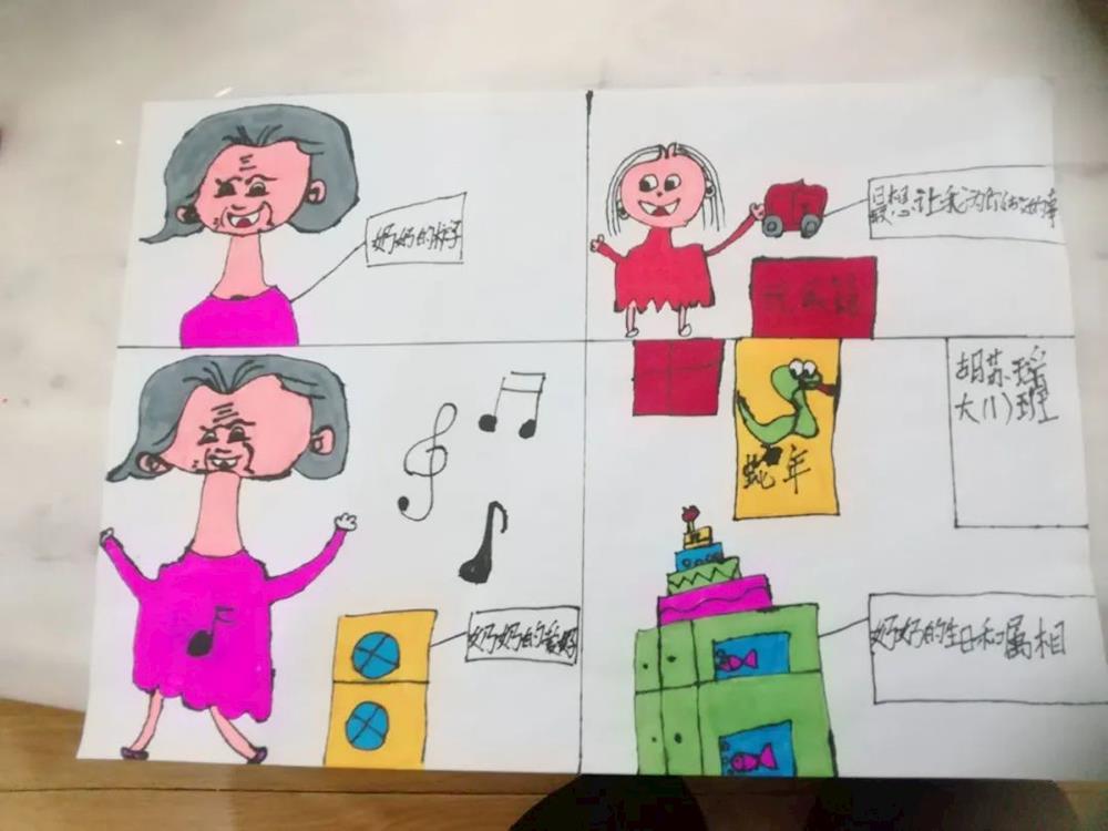 幼:我的爷爷,高大强壮 能撑起一个家;我的奶奶,温柔体贴 能抚平一切不开心