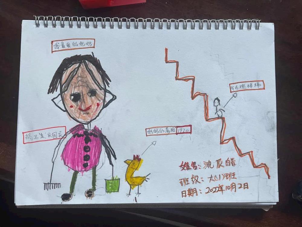 幼:爷爷奶奶最喜欢我和弟弟了,他们每天都在照顾曾祖父母,奶奶说他们看见我们四个在身边就很开心